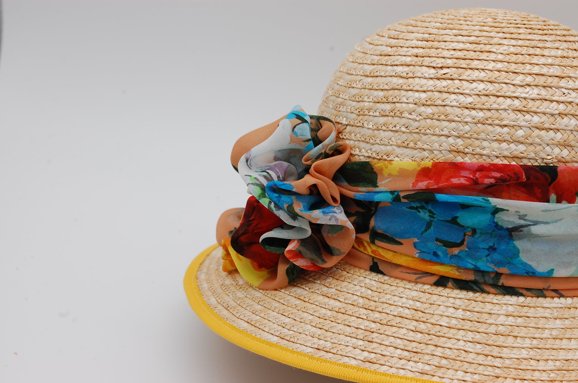 Modello Anni 30 paglia di Firenze con fiocco in tessuto chiffon