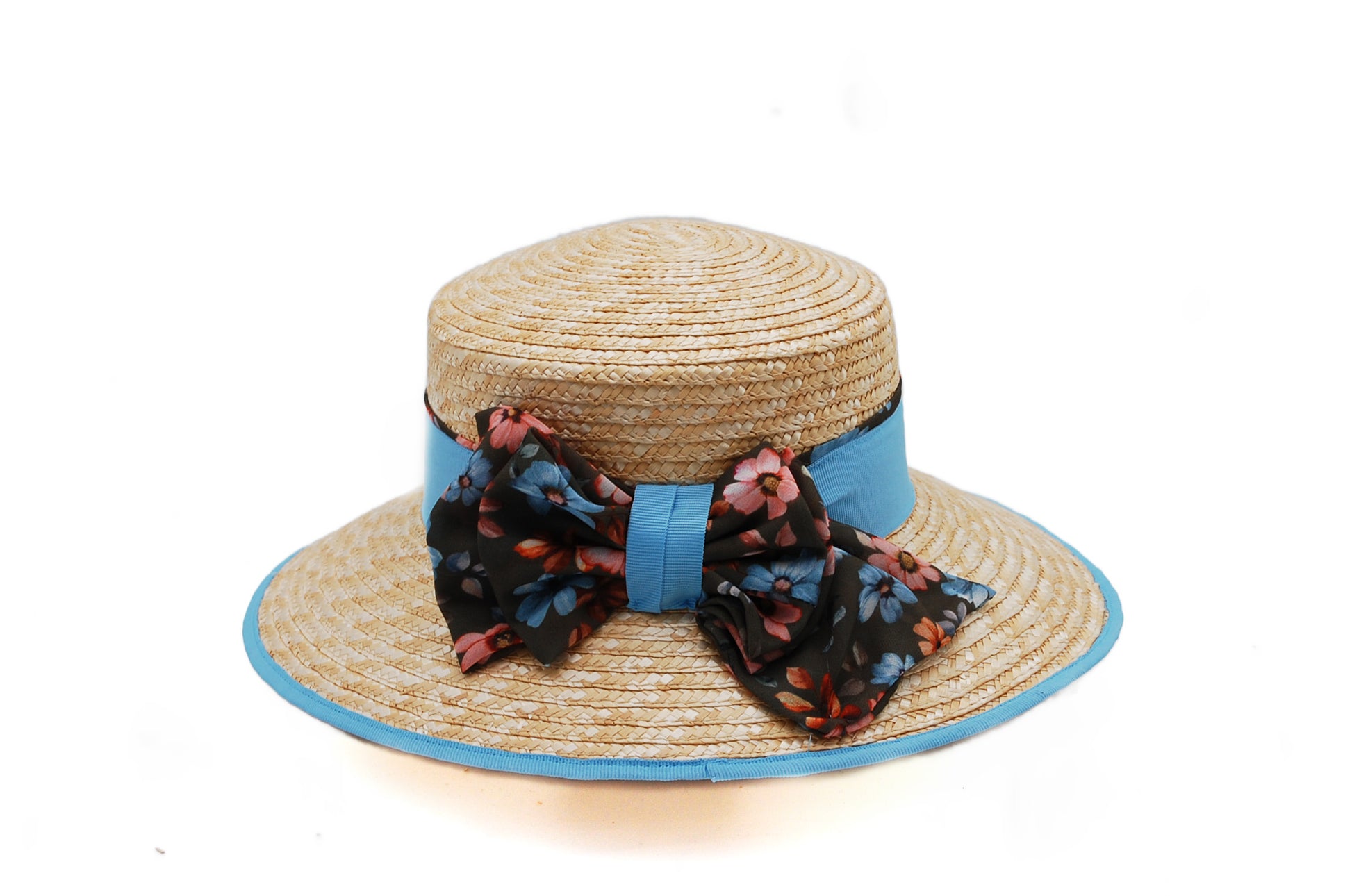 Modello collegiale in paglia di Firenze rifinito in tessuto di chiffon